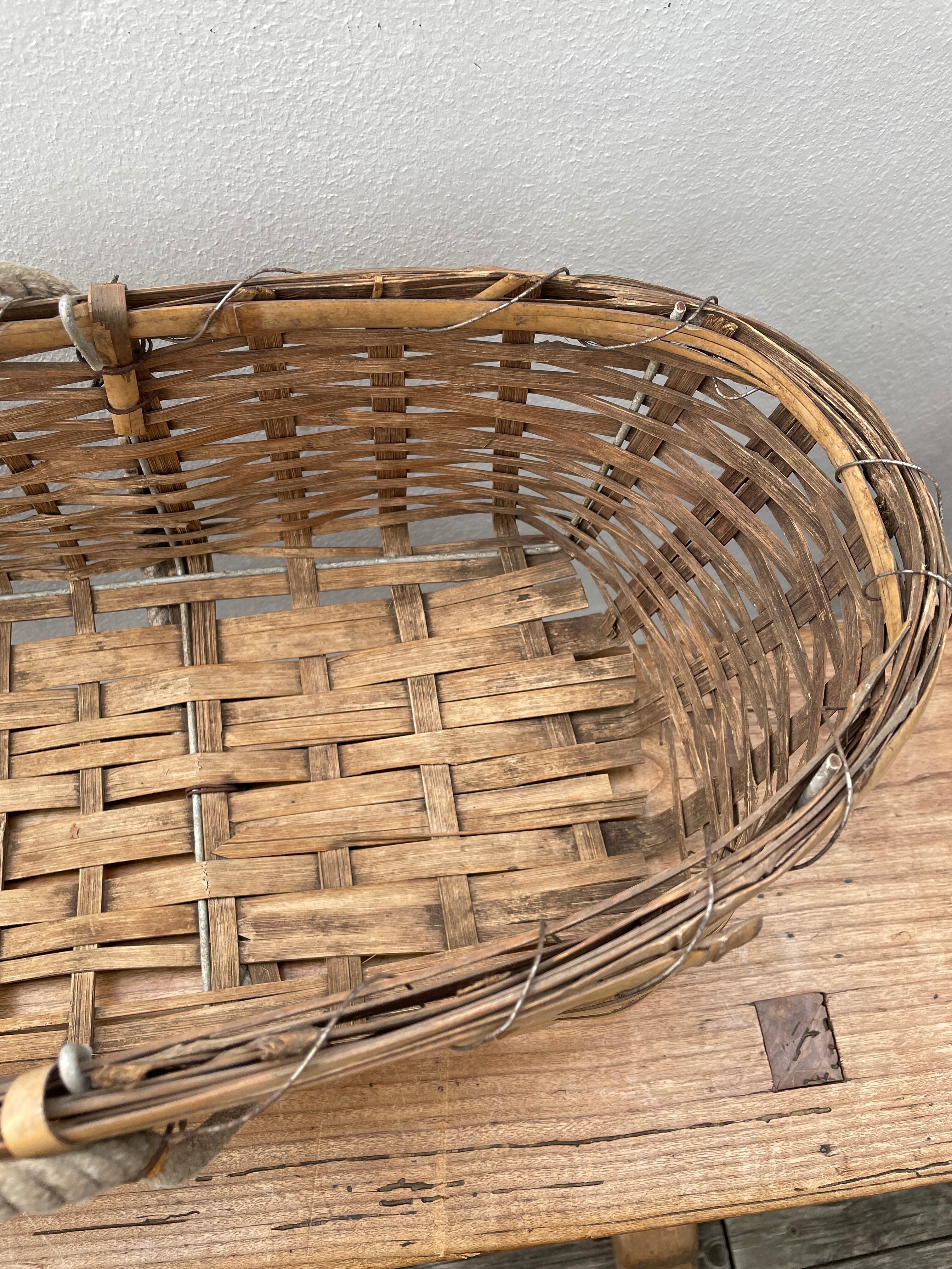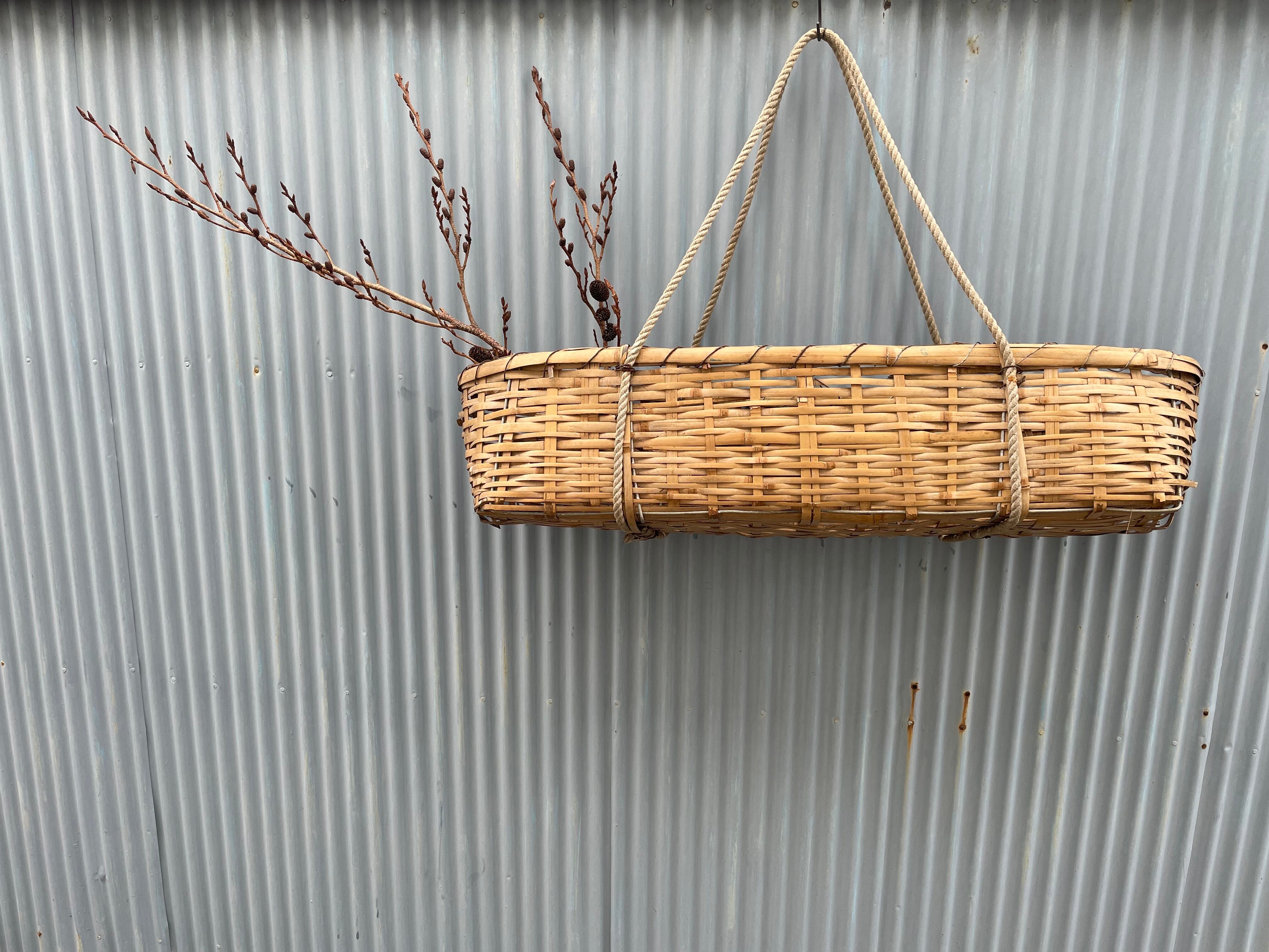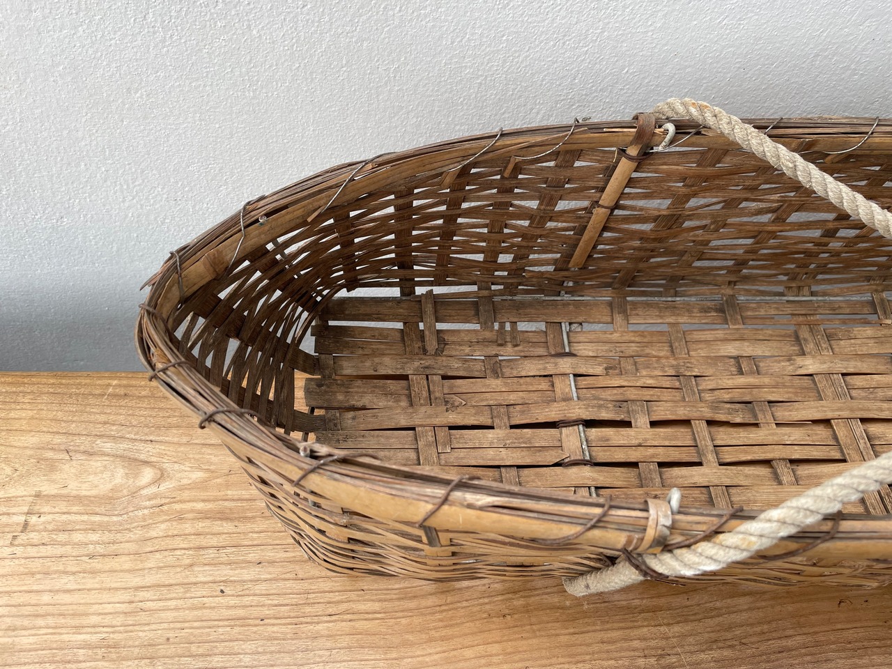 古い横長の竹かご